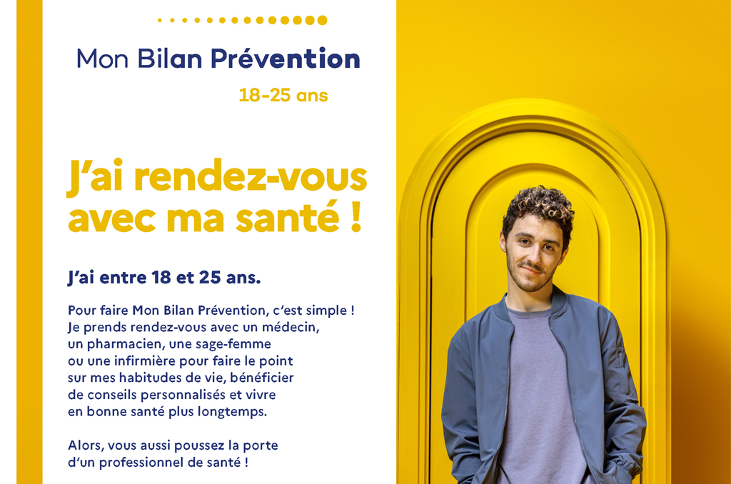 « Mon bilan prévention » permet aux Français d’accéder à une nouvelle offre personnalisée pour prendre le temps, lors d’un échange avec un professionnel de santé (médecin, infirmier, pharmacien, sage-femme et prochainement masseur-kinésithérapeute), de faire le point sur sa santé et ses habitudes de vie. Ainsi, en fonction de son âge, chaque Français pourra bénéficier de conseils adaptés et ciblés. Les questions d’alimentation, de sommeil, d’activité physique, de santé mentale, ou encore de santé sexuelle pourront être abordées au cours des bilans. Chaque bilan prévention sera également l’occasion d’informer les assurés sur les différents dispositifs de santé publique, tels que les campagnes de vaccination ou encore les dépistages organisés des cancers.